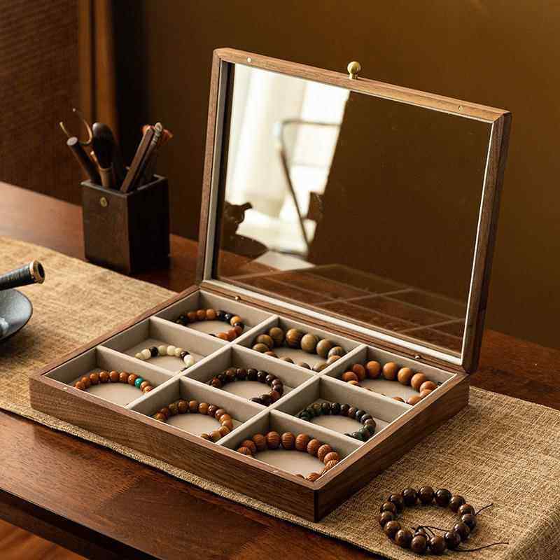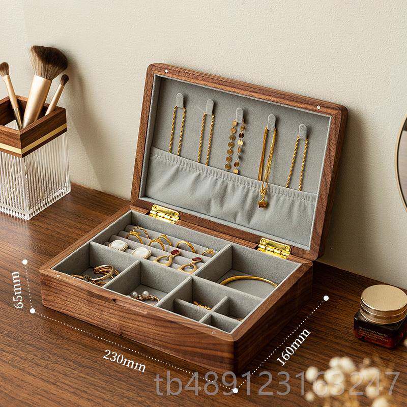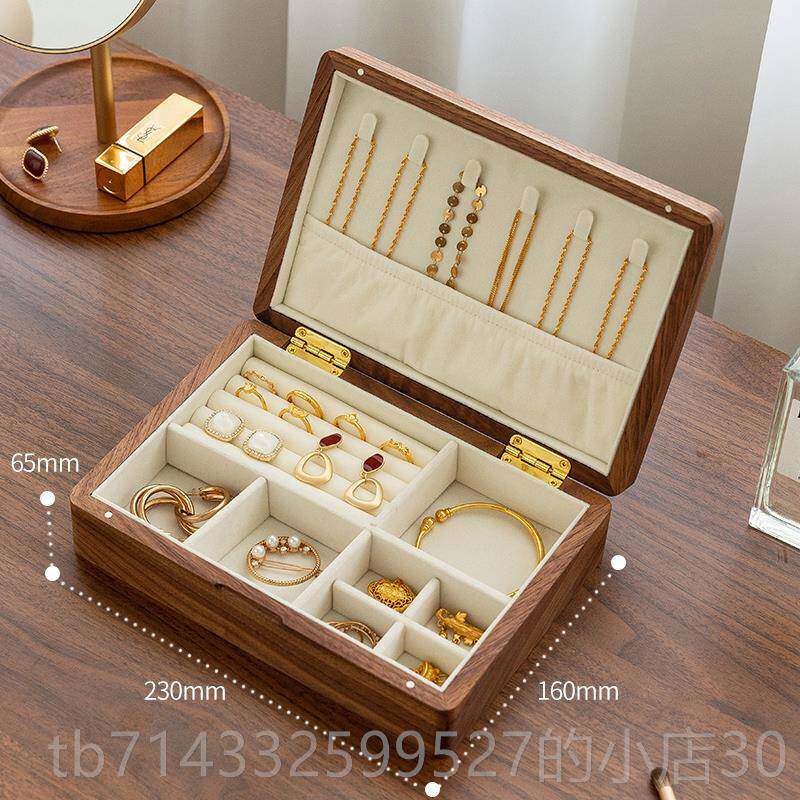 正品胡桃木黄档金珠首饰盒宝子质2024新款实木手饰品首饰收纳盒高