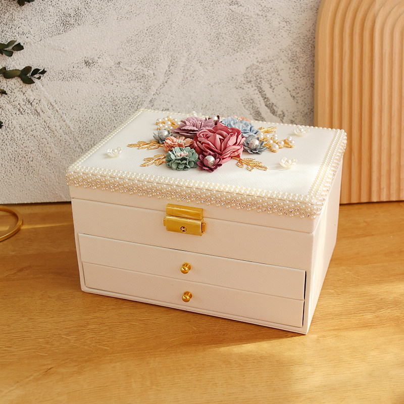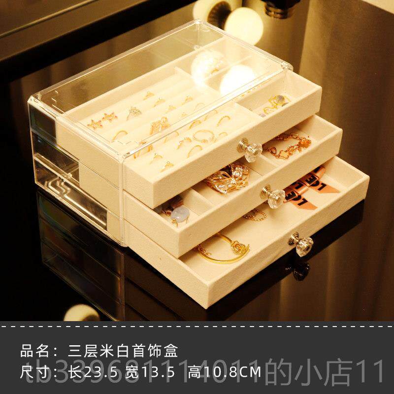 高档公主透耳首饰盒三层抽屉饰品收明盒手饰品首饰收纳盒耳钉环盒