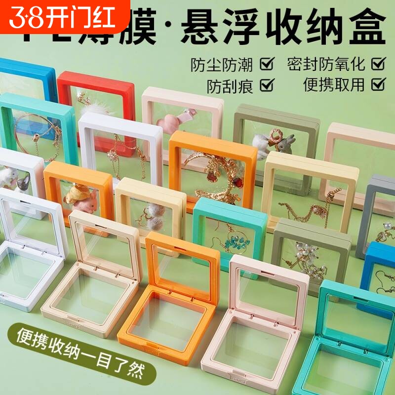 饰品悬浮盒pe薄膜盒手镯戒指防氧化首饰透明展示收纳盒密封便携