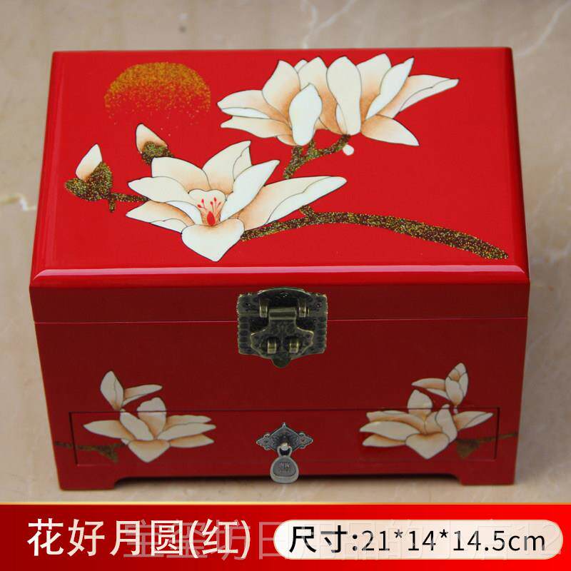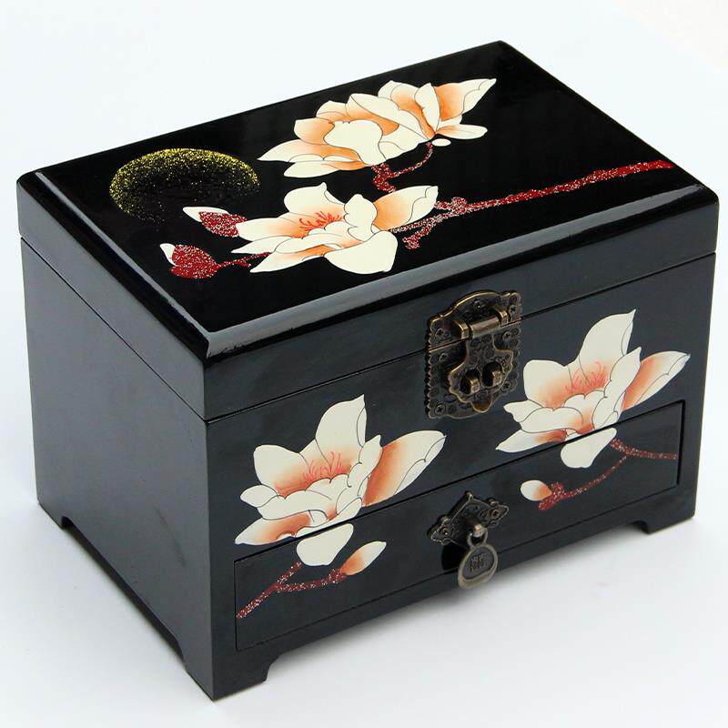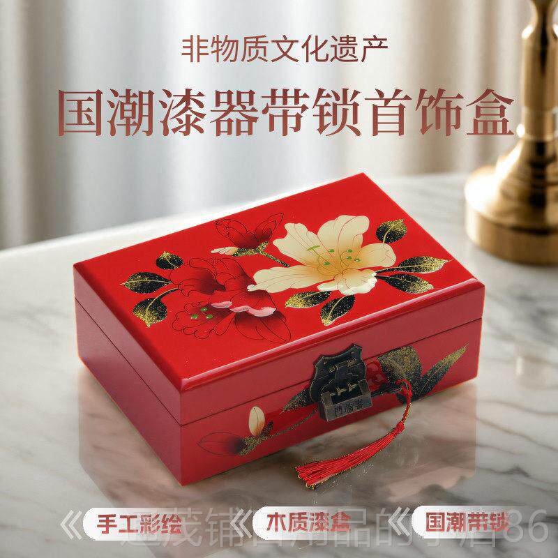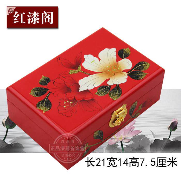 高档山漆器首饰盒西木质手饰品首饰收纳盒宝项链手镯制收珠纳盒带