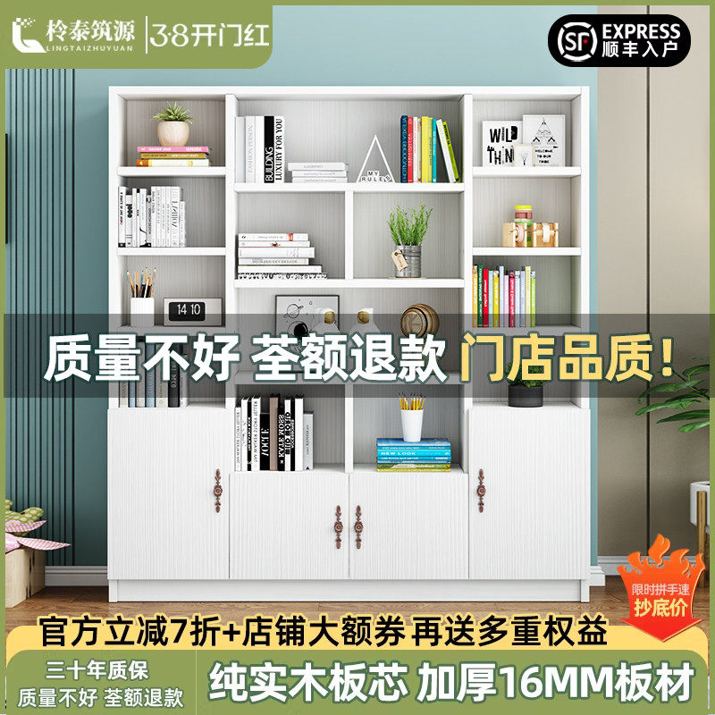 书架置物架落地书柜家用现代简约带门防尘简易落地多层靠墙收纳架