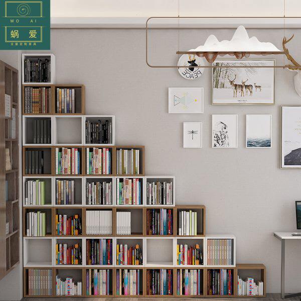 书柜书架家用落地简约现代多层格子储物柜学生收纳置物架定制柜子