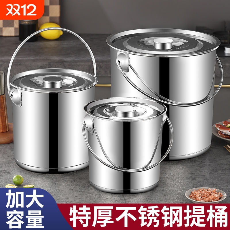 不锈钢圆桶水桶手提式加厚汤桶带盖商用储水桶家用幼儿园提桶厨房