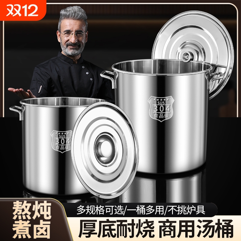 304不锈钢桶圆桶带盖商用汤桶卤桶炖锅烧水大容量加厚家用汤锅316