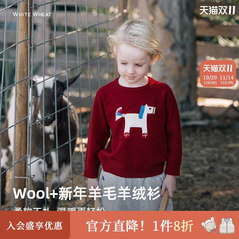 【新年限定】whitewheat儿童2025冬季毛衣羊毛男女童山羊绒针织衫