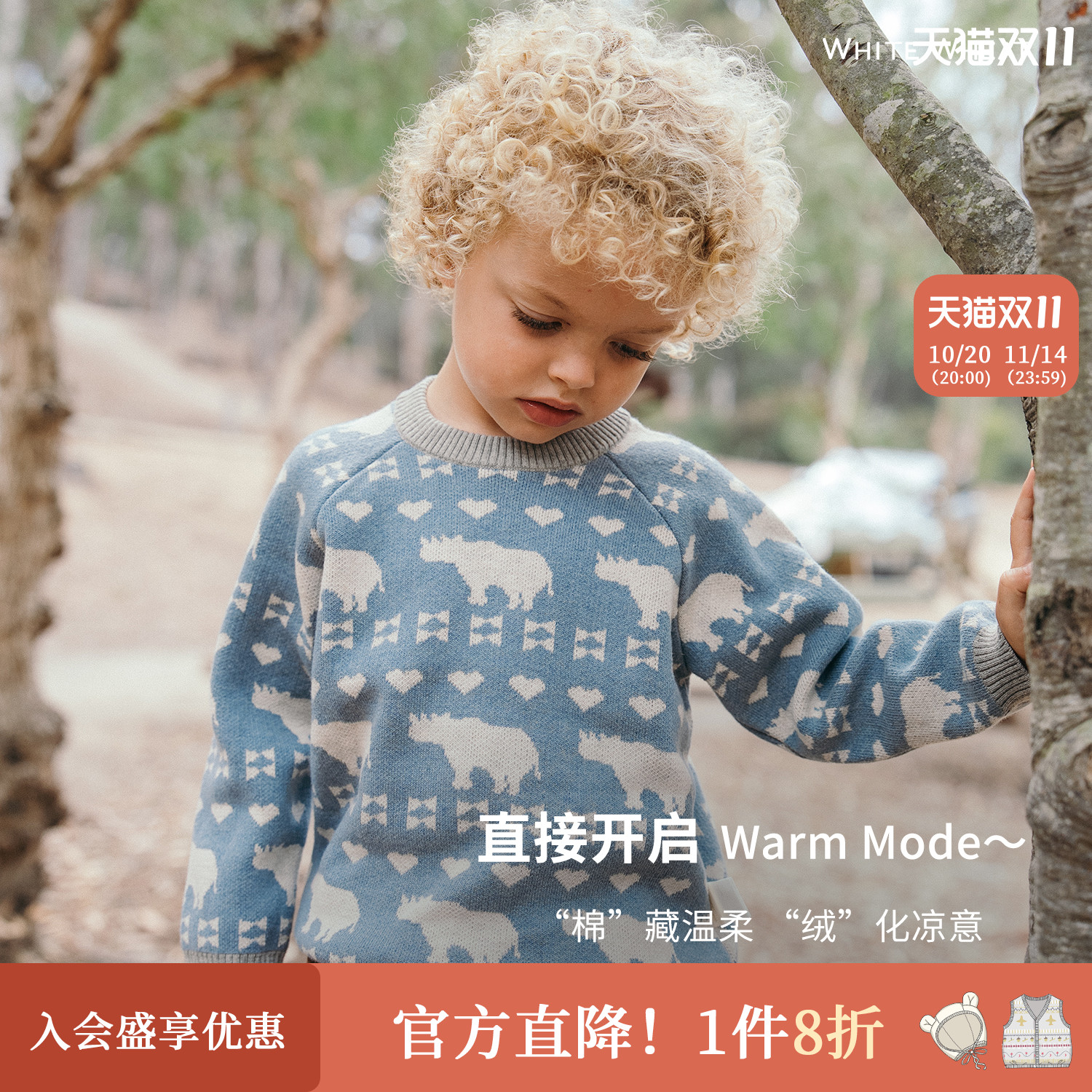 whitewheat儿童2025冬季新款上衣男女童宝宝羊绒针织衫休闲厚毛衣