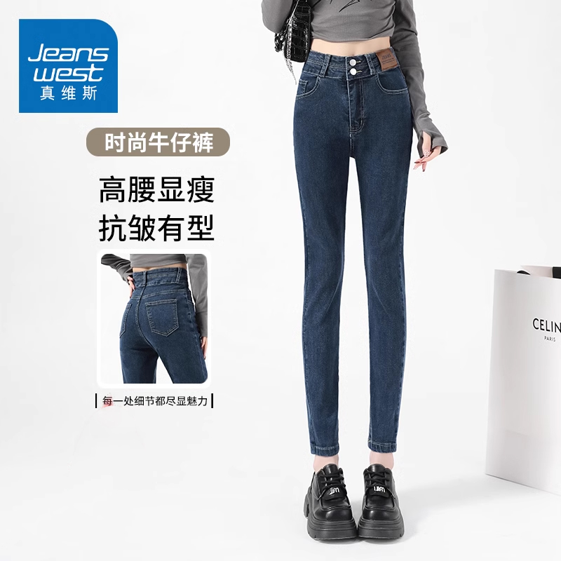 KZH真维斯韩版牛仔裤女春秋新款紧身铅笔裤弹力辣妹高腰小脚长裤