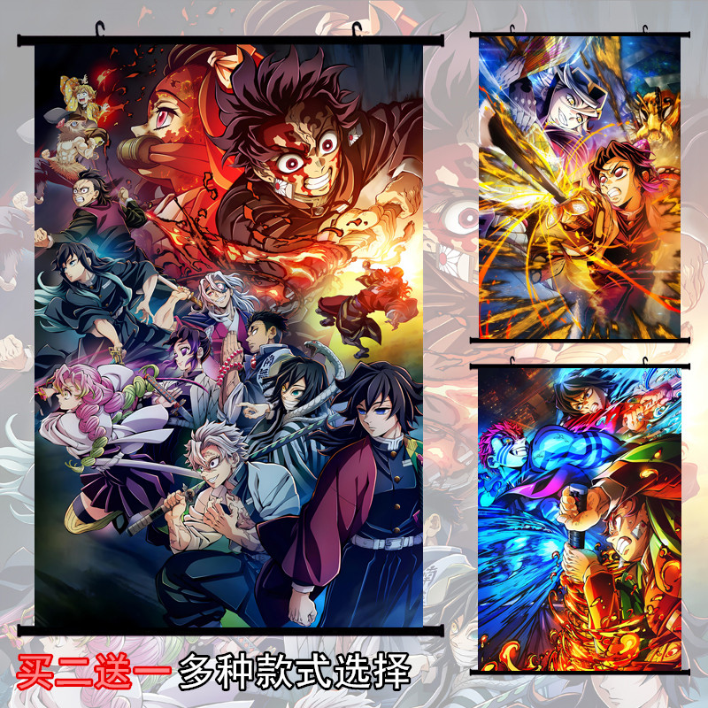 动漫周边鬼灭之刃挂画绸布海报炭治郎祢豆子善逸义勇蛇卷轴二次元