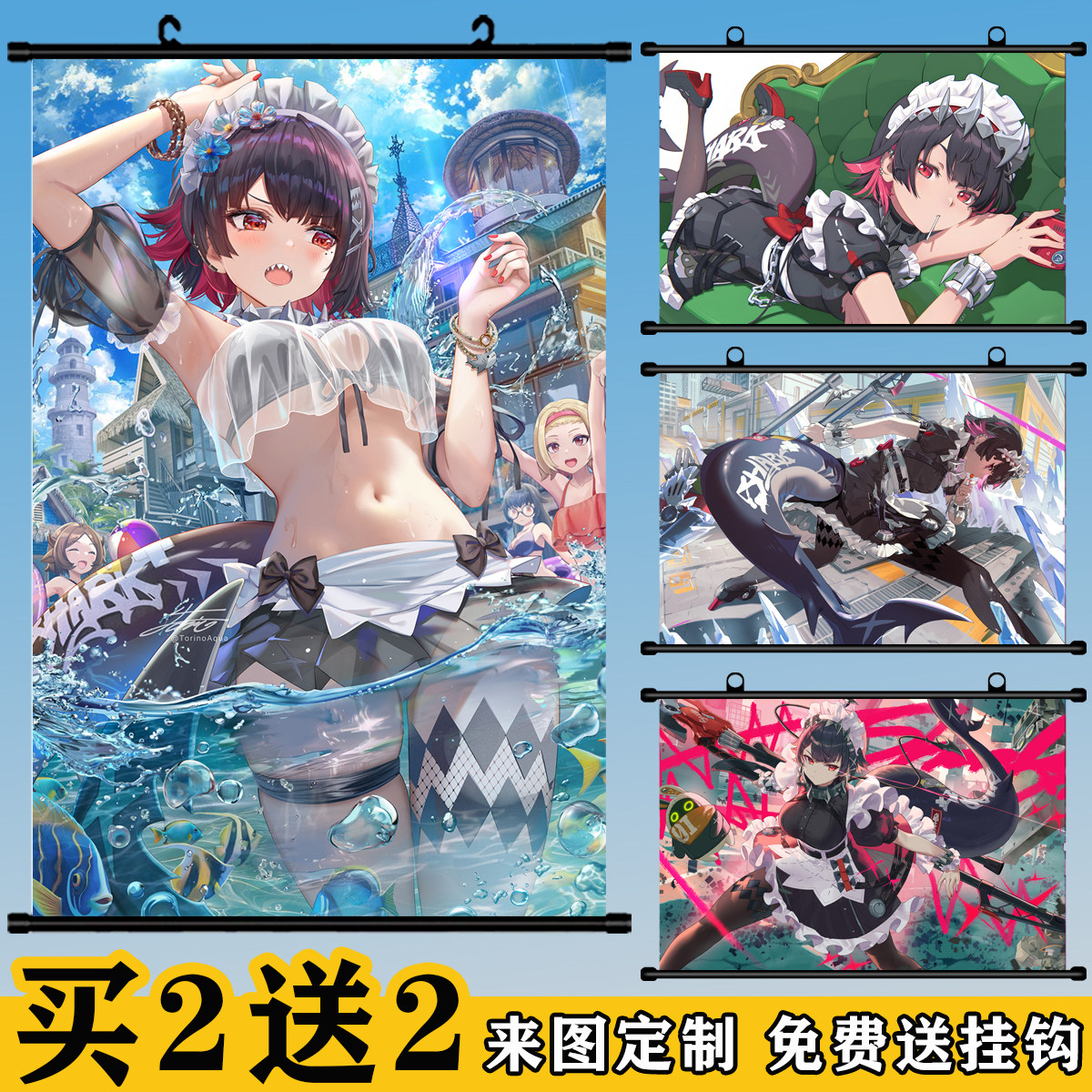 绝区零鲨鱼妹动漫挂画卷轴定制二次元装饰画学生宿舍卧室海报周边