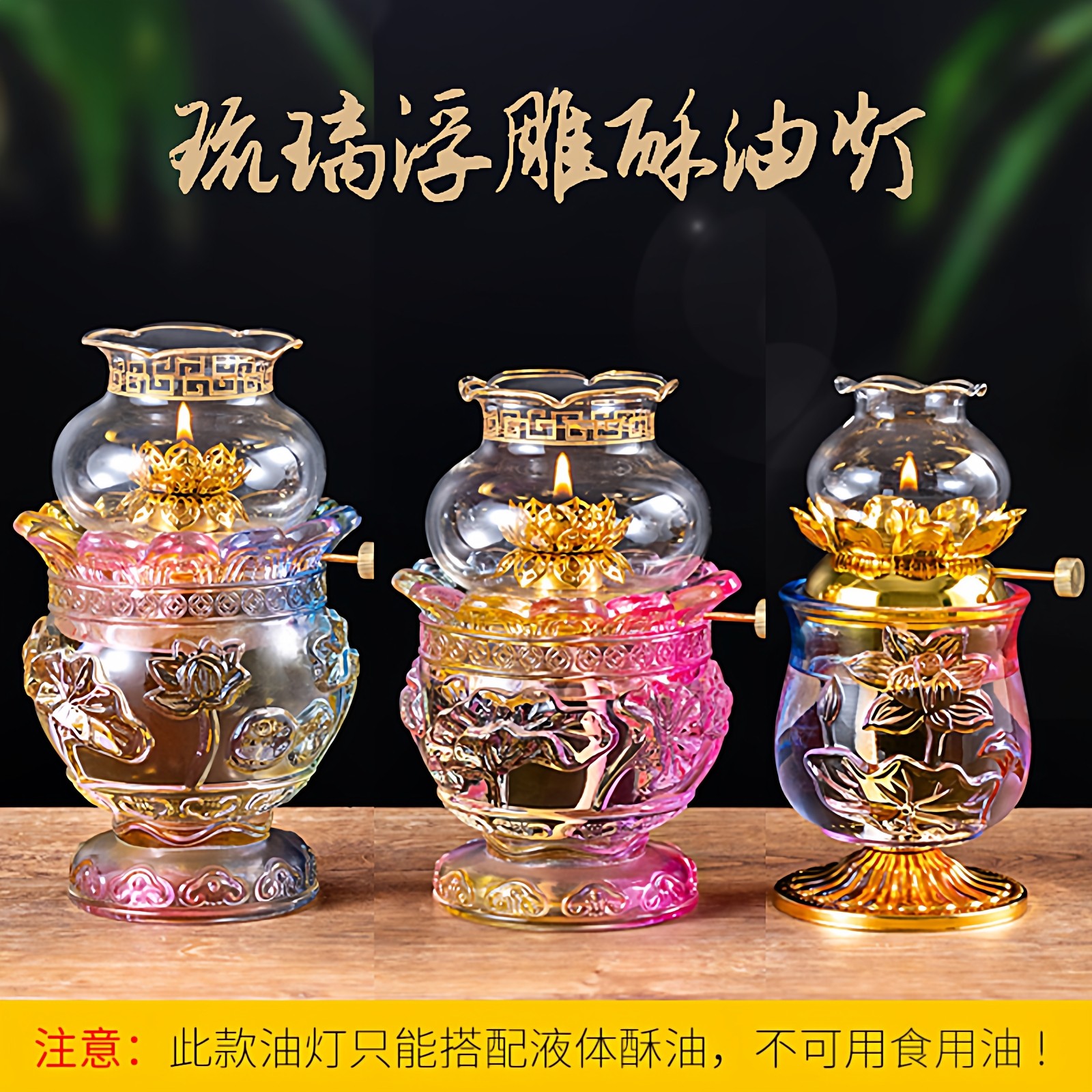 液体油灯灯盏供佛灯防风玻璃佛前供灯酥油灯长明灯家用神台莲花灯