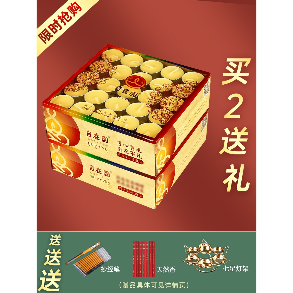 自在园酥油灯2/4/8小时100粒长明灯佛前供灯家用室内菩提香薰蜡烛