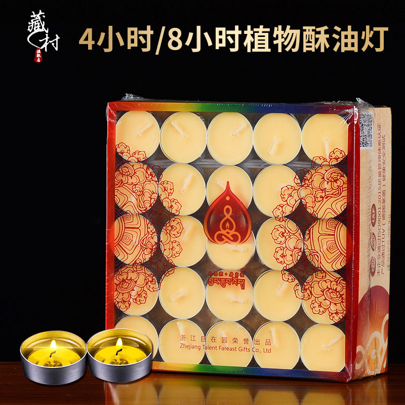藏村 酥油蜡烛桌面灯长明灯4/8小时家用无烟供灯酥油100粒酥油灯