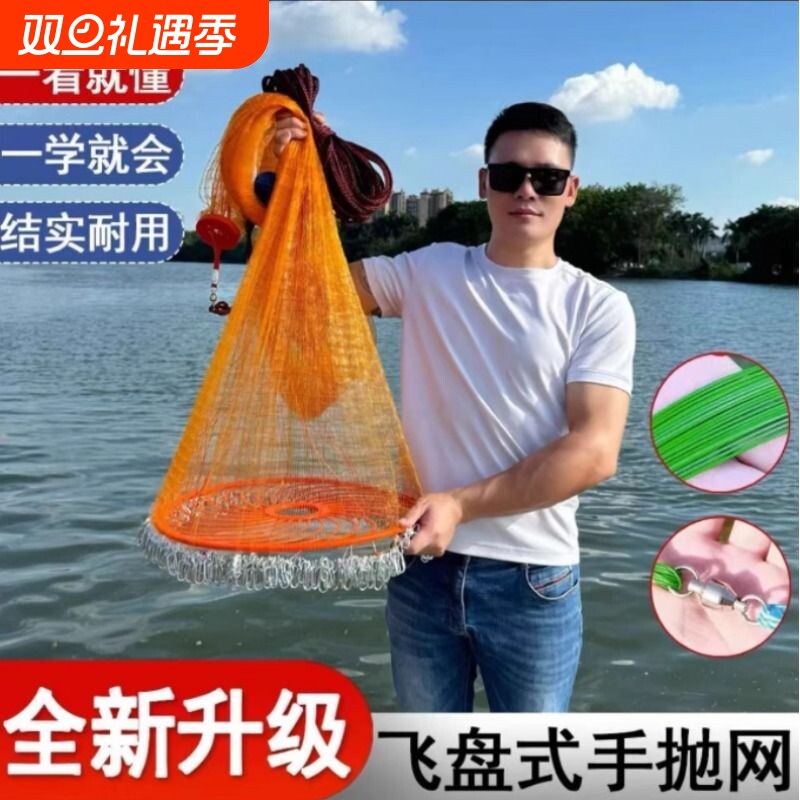 鱼网撒网手抛渔网大飞盘式圆盘手撒捕鱼易抛网甩抓打扑捞自动鱼网