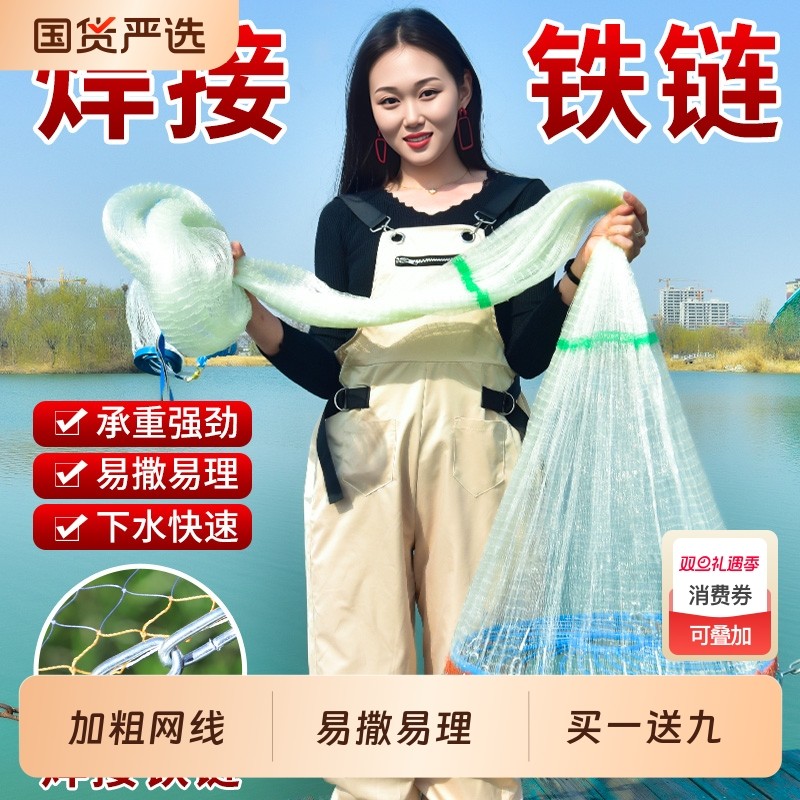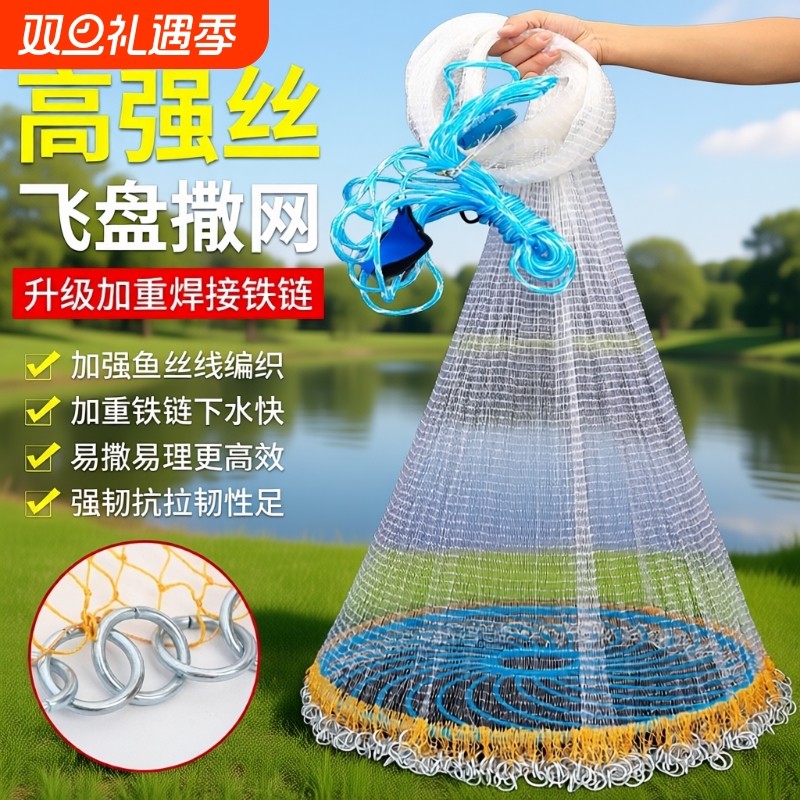 鱼网撒网手抛渔网大飞盘式手撒捕鱼易抛网甩抓打扑捞自动丝网小鱼