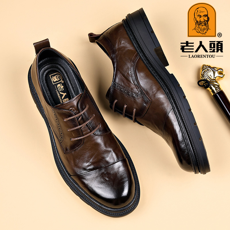 老人头商务正装三接头军官皮鞋男真皮透气中年喜公公婚宴装爸爸鞋