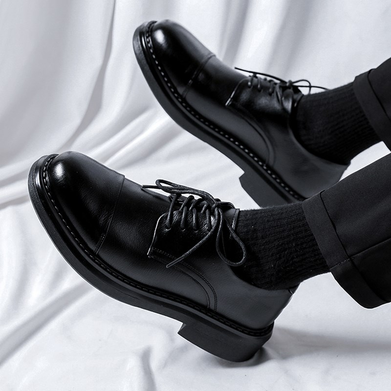 三接头军官老式皮鞋男商务正装真皮套脚休闲透气尖头内增高爸爸鞋