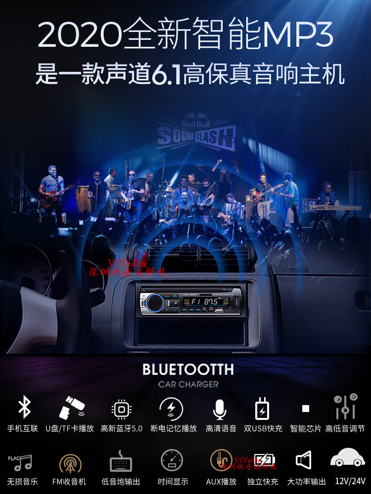 12V/24V智能大功率高清音质车载收音机蓝牙音响多功能播放器双USB