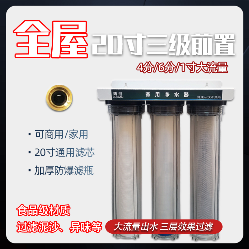 厨房家用20寸三级前置过滤器自来水防爆透明滤瓶全屋大流量净水器
