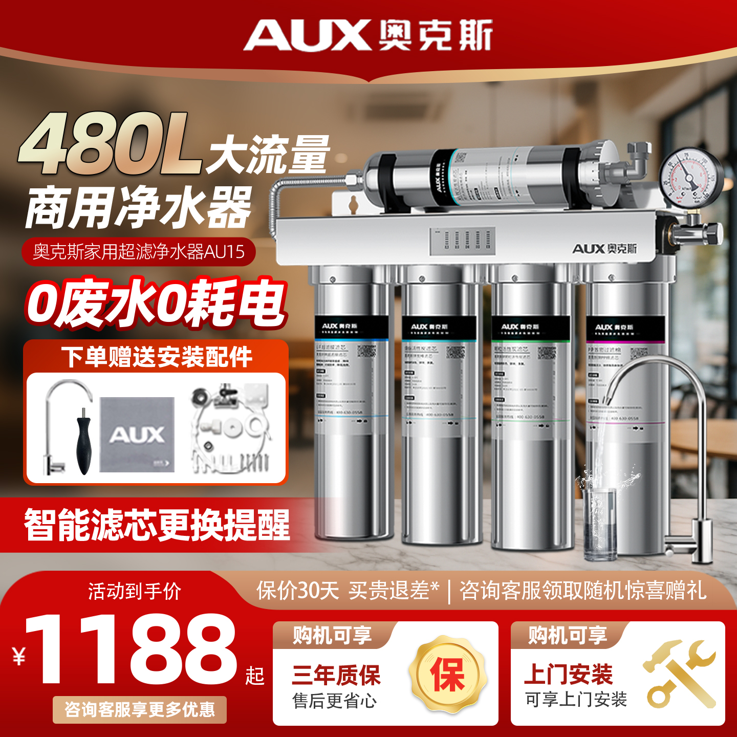 奥克斯商用大流量净水器超滤净水机奶茶店自来水五级不锈钢过滤器
