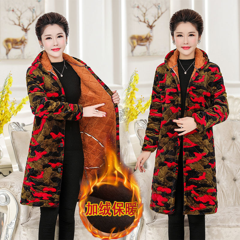 四川省服中老年宽松罩衣女中长款妈妈冬季装加绒外套老人棉袄保暖