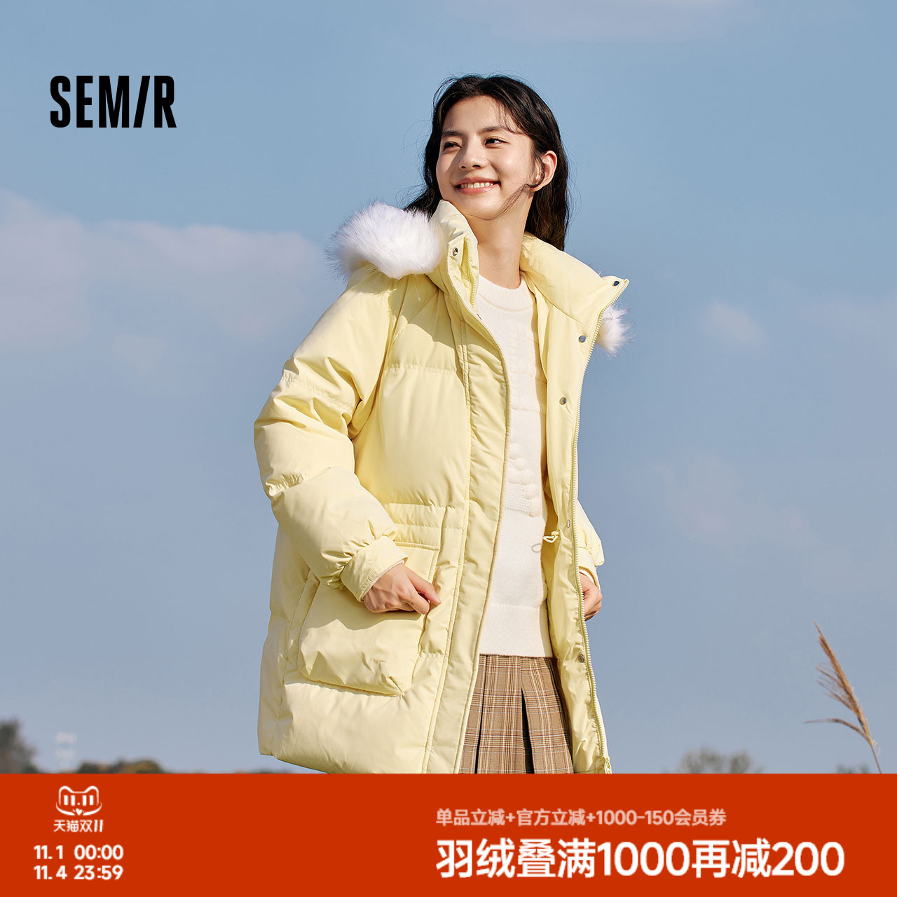 森马羽绒服女中长款收腰宽松毛领连帽2023冬季新款防风防水厚外套