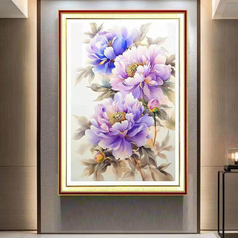 紫色牡丹十字绣2025新款线绣客厅小件卧室玄关高级感餐厅花卉满绣