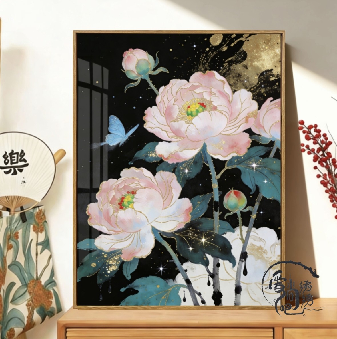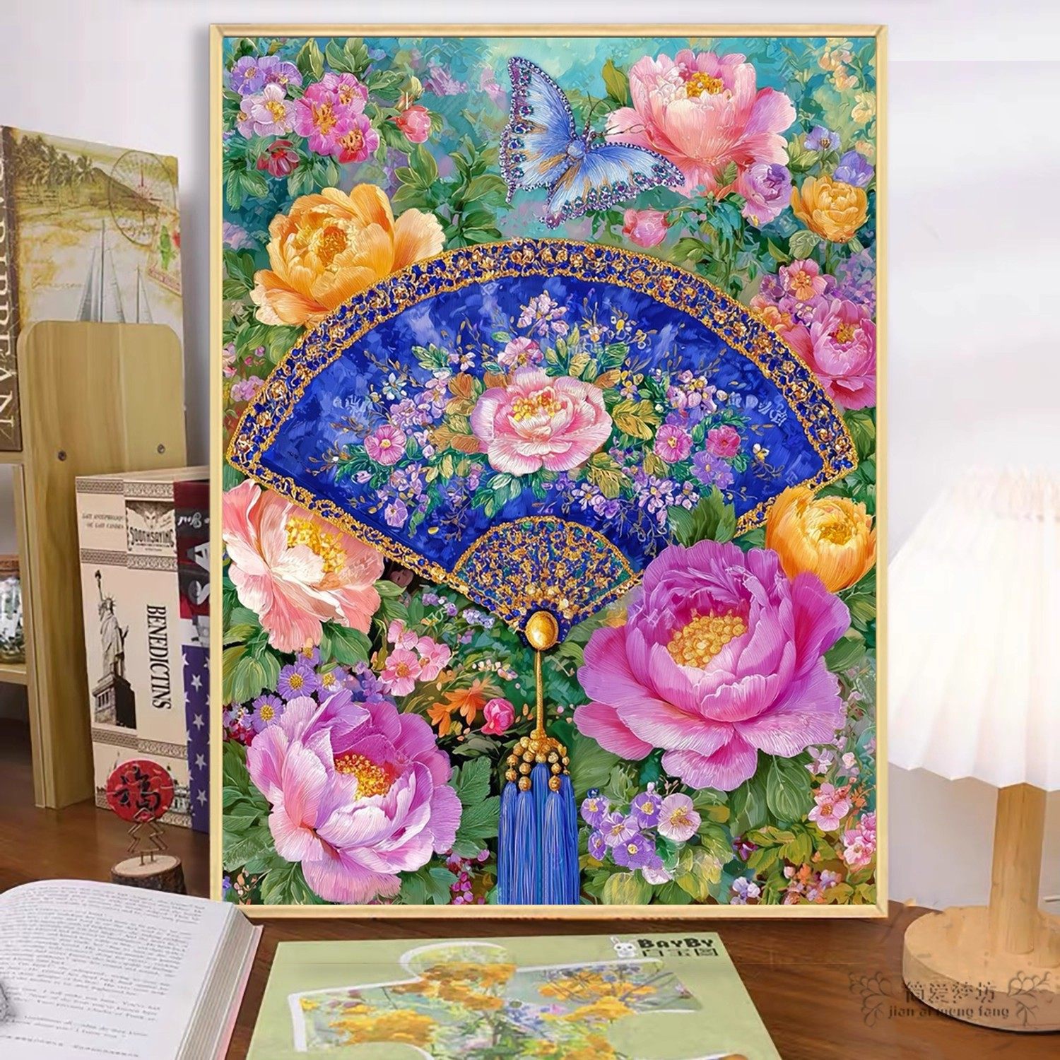 尽扇尽美牡丹十字绣2026新款满绣花卉手工点贴钻砖石画卧室高颜值