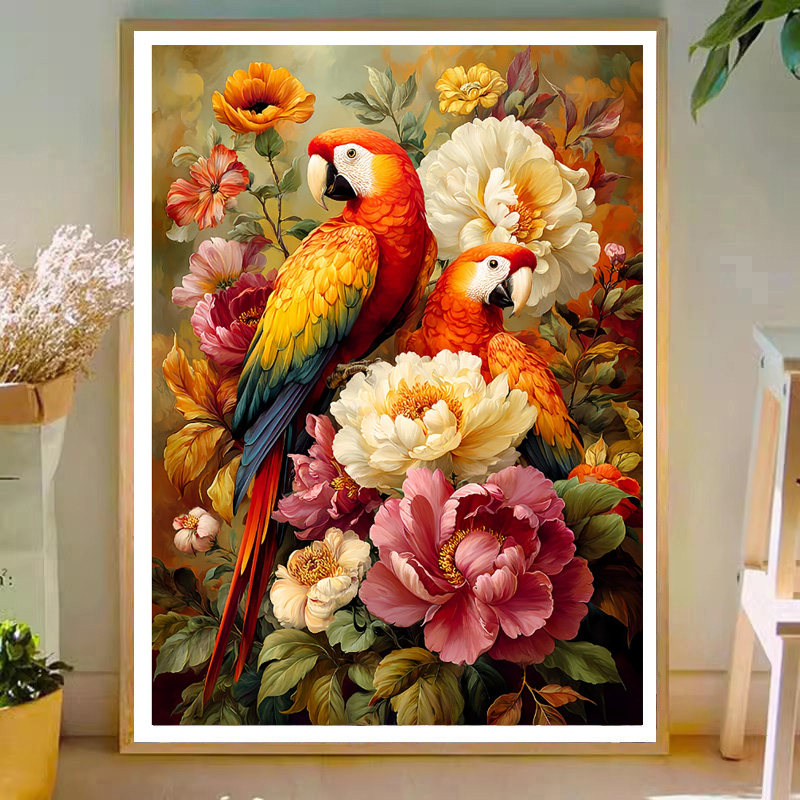 已买版心心相印雍容华贵鹦鹉牡丹十字绣2026新款自己手工绣刺绣图
