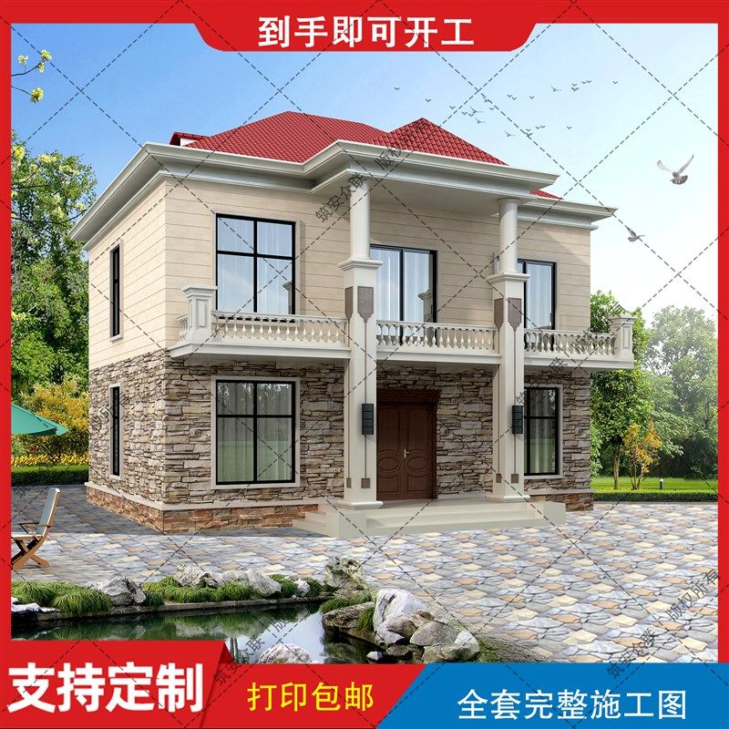 8F别墅设计图纸新农村自建房设计图二层两层三层建筑房屋设计效果