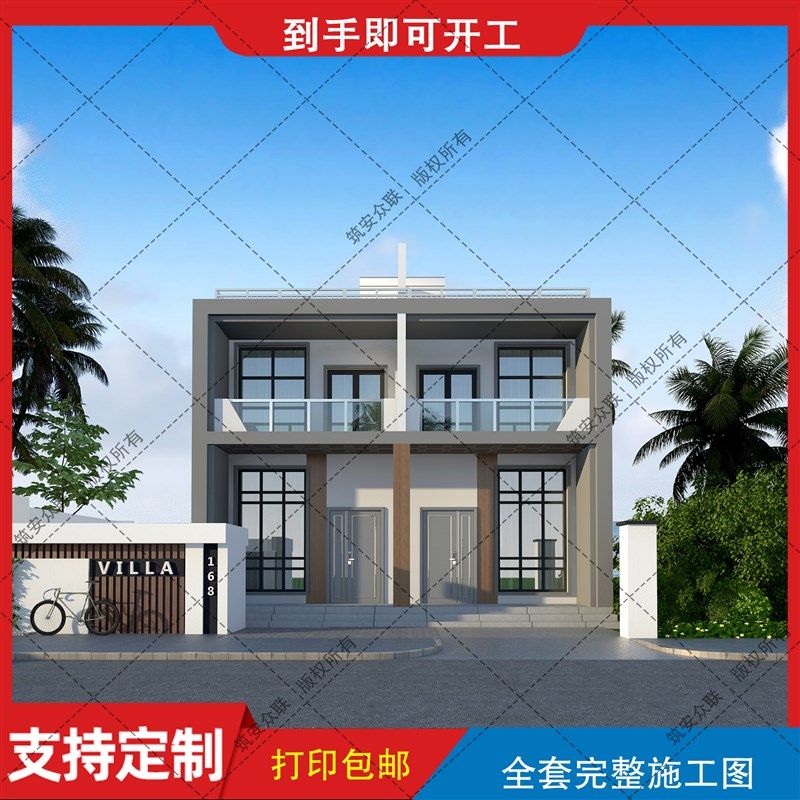 别墅设计农村自建房图纸两层简约现代建筑结构施工图水电B232