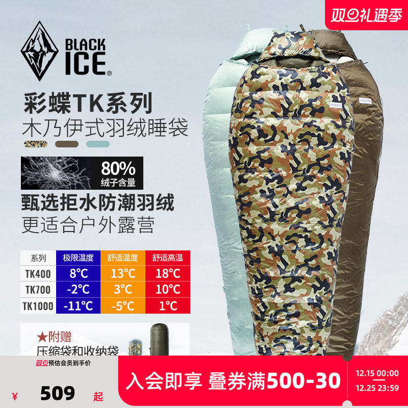 BlackIce黑冰A/B400/700/1000/1500户外露营冬季超轻鸭绒羽绒睡袋