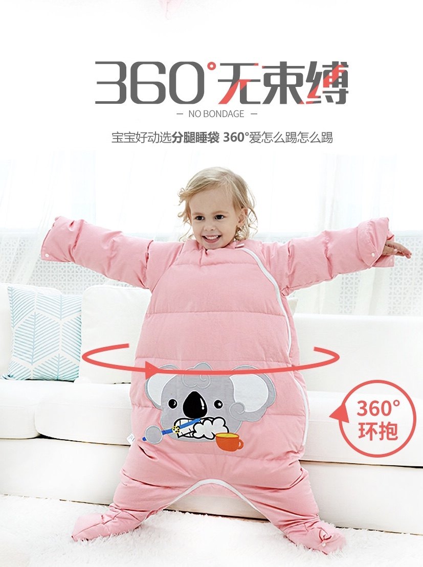 米汤妈咪宝宝羽绒睡袋1-5岁冬季加厚卡通保暖小童中童分腿防踢被