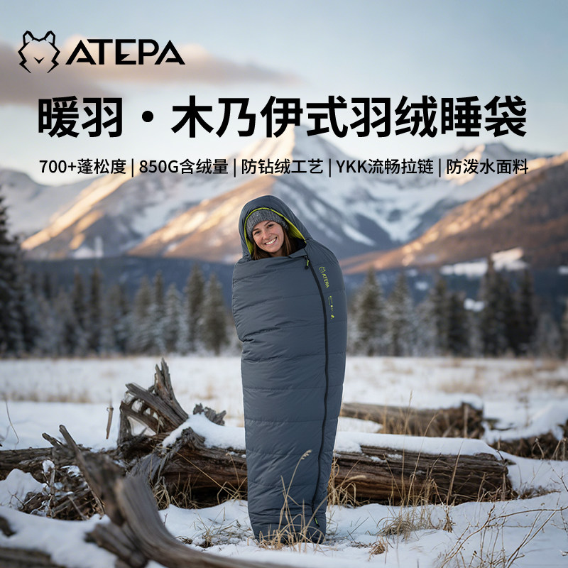 ATEPA户外羽绒睡袋成人冬季防寒保暖睡袋轻量化露营加厚木乃伊式