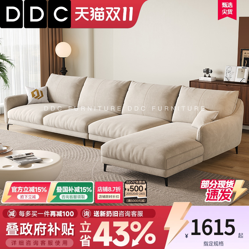 DDC意式简约直排猫抓绒布沙发组合棉麻布艺现代大小户型客厅贵妃