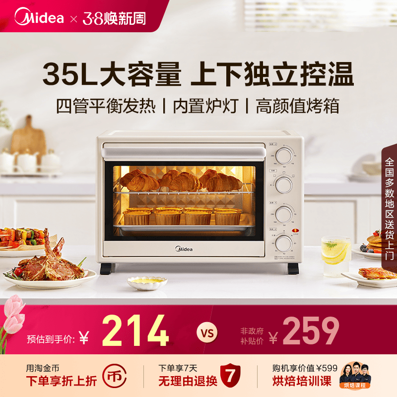 美的烤箱烘焙专用家用小型空气炸烘烤一体大容量多功能电烤箱3515