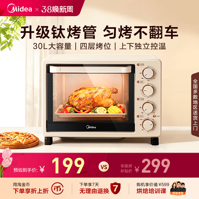 美的3031烤箱家用烘烤箱新款30升烘焙多功能电烤箱大容量一体机
