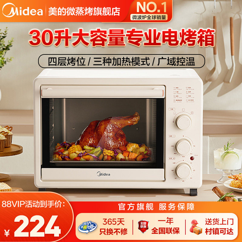 美的烤箱家用烘烤箱新款30升多功能电烤箱大容量空气炸锅蒸烤一体