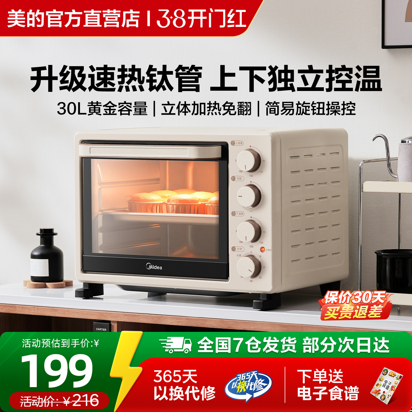 美的烤箱家用小型30升蛋糕烘焙专用2024新款多功能电烤箱PT30K3