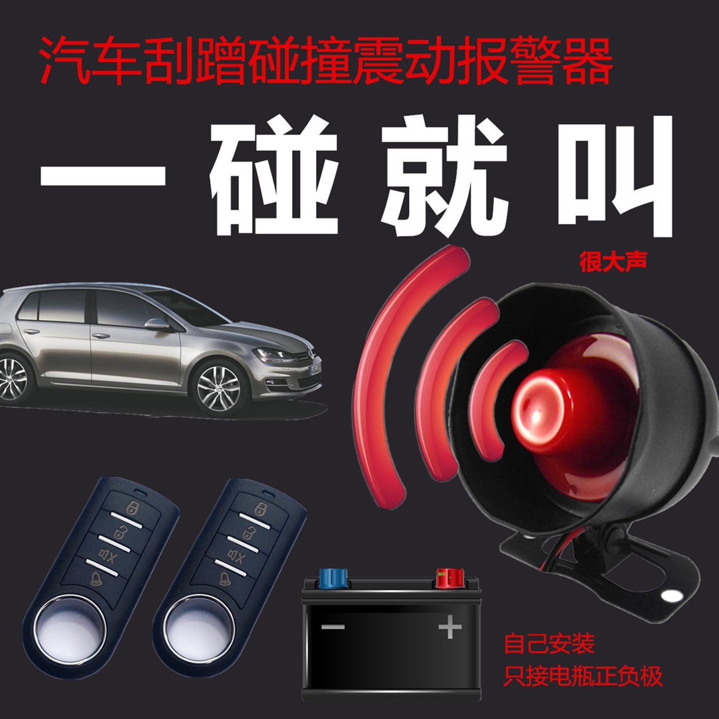 12V汽车报警器新车防刮碰触撞喇叭感应震动车用防盗器免剪线安装