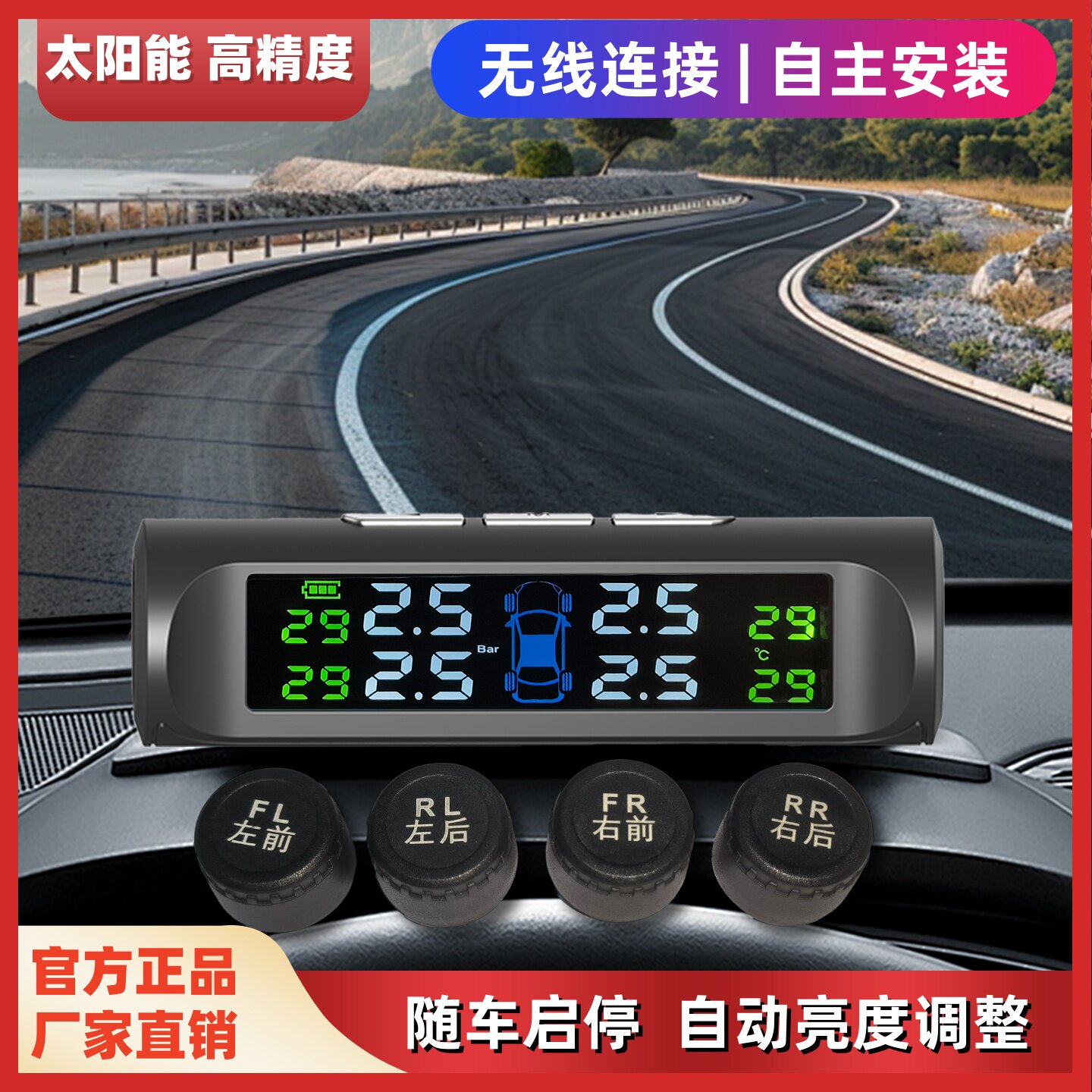 太阳能汽车胎压监测器外置无线高精度防盗防漏免安装USB双模充电