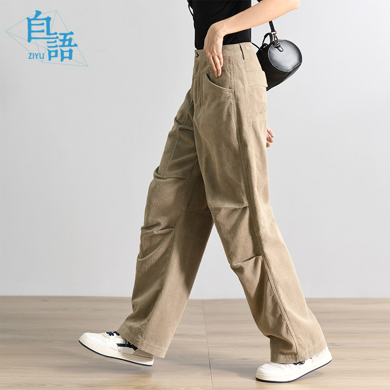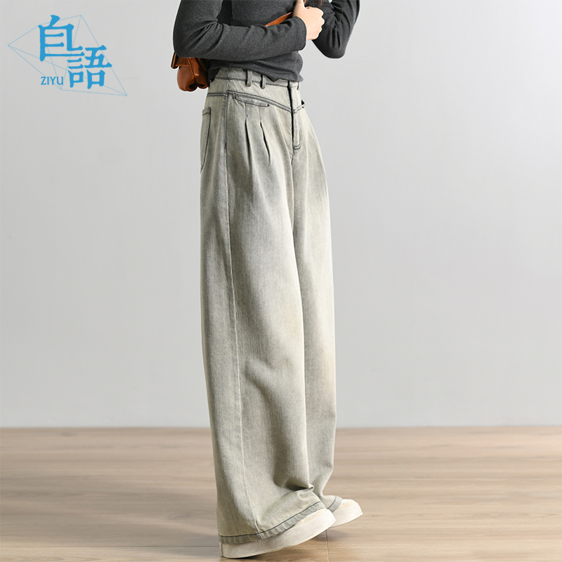 自语23春新品工装复古宽松休闲阔腿简约百搭休闲直筒大码牛仔裤女