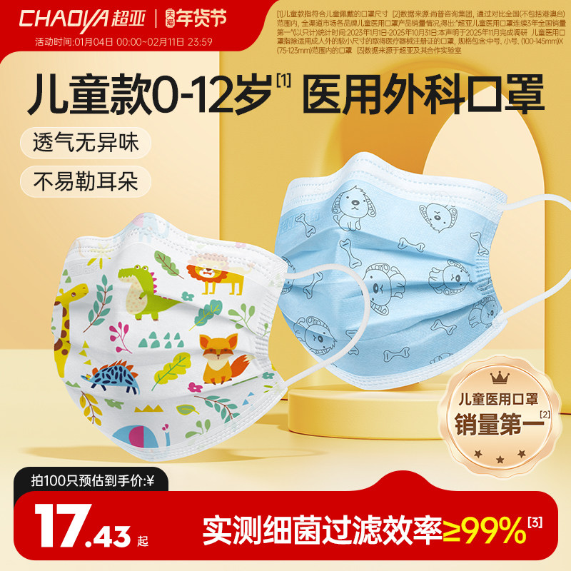超亚儿童款医用外科口罩0到12岁旗舰店三层正品正规学生时尚口罩