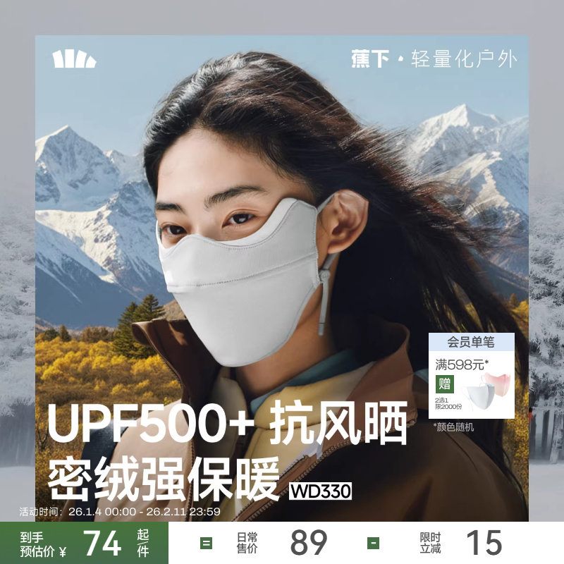 蕉下保暖加绒口罩男女同款立体防紫外线秋冬天防寒防风高颜值面罩