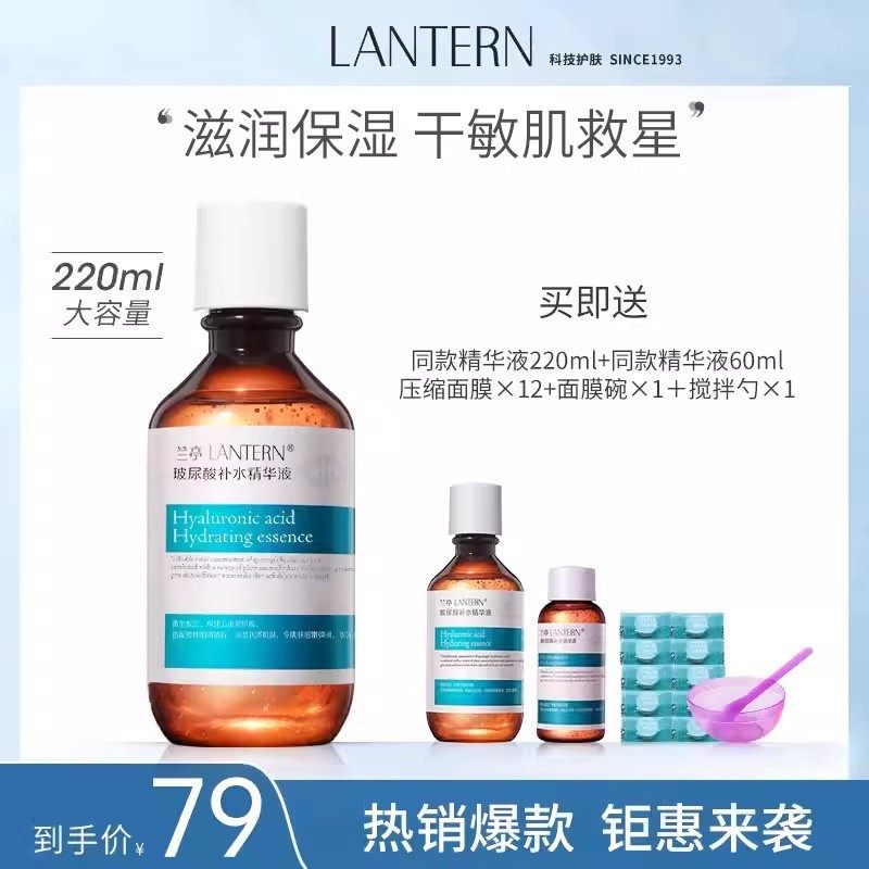 兰亭玻尿酸补水精华液220ml修护原液透明质酸保湿面部滋润男女