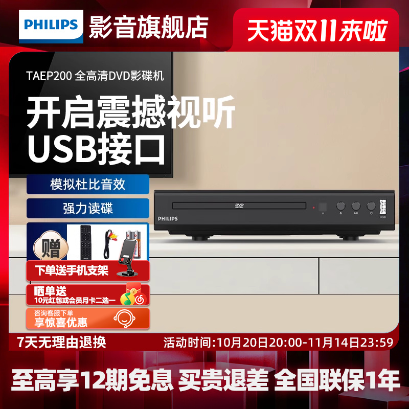Philips/飞利浦 TAEP200强力读碟CD VCD DVD影碟机播放机器非蓝光