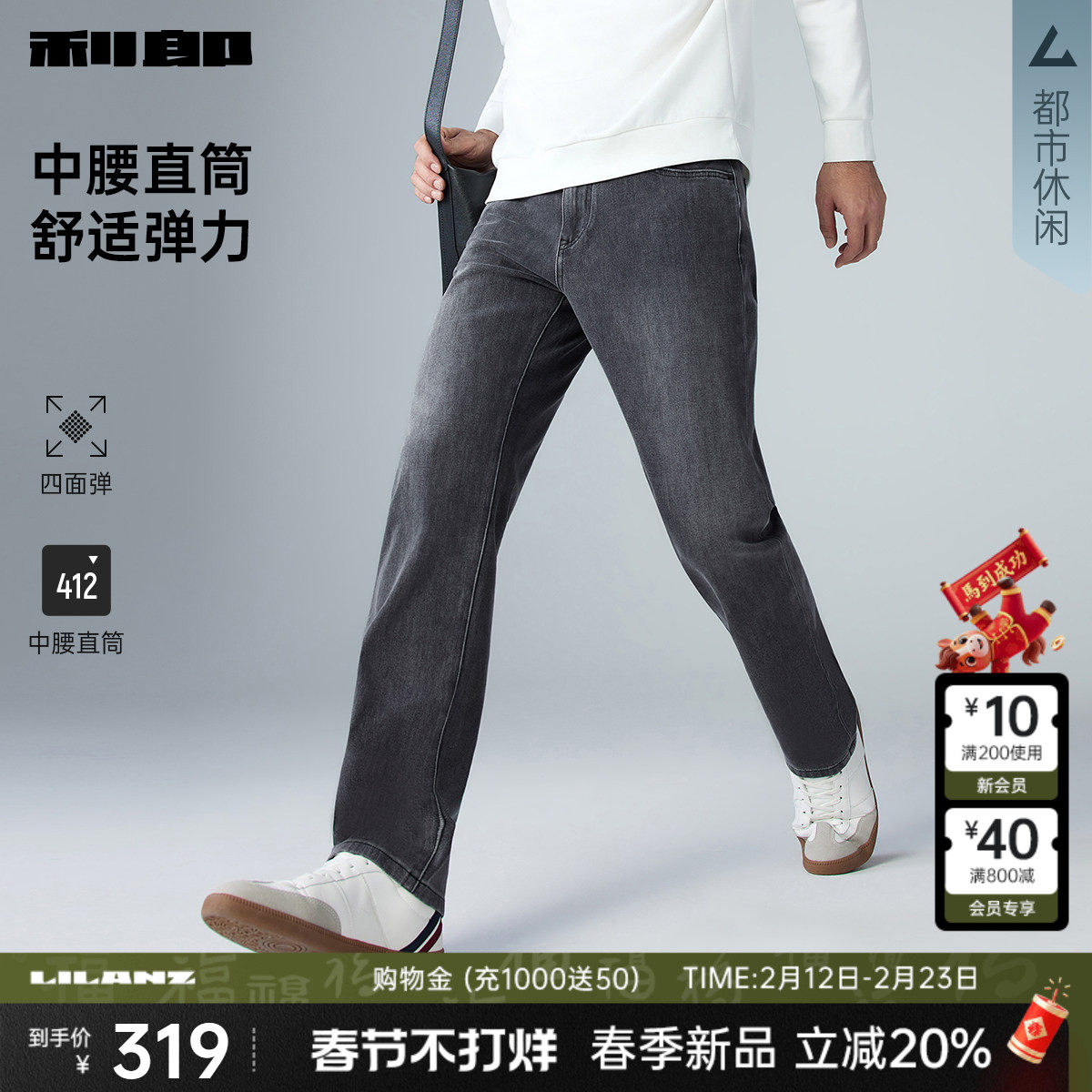 【四面弹力/直筒】利郎官方牛仔裤男款2026春季新款中腰黑色男裤