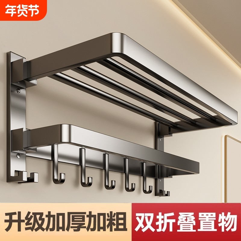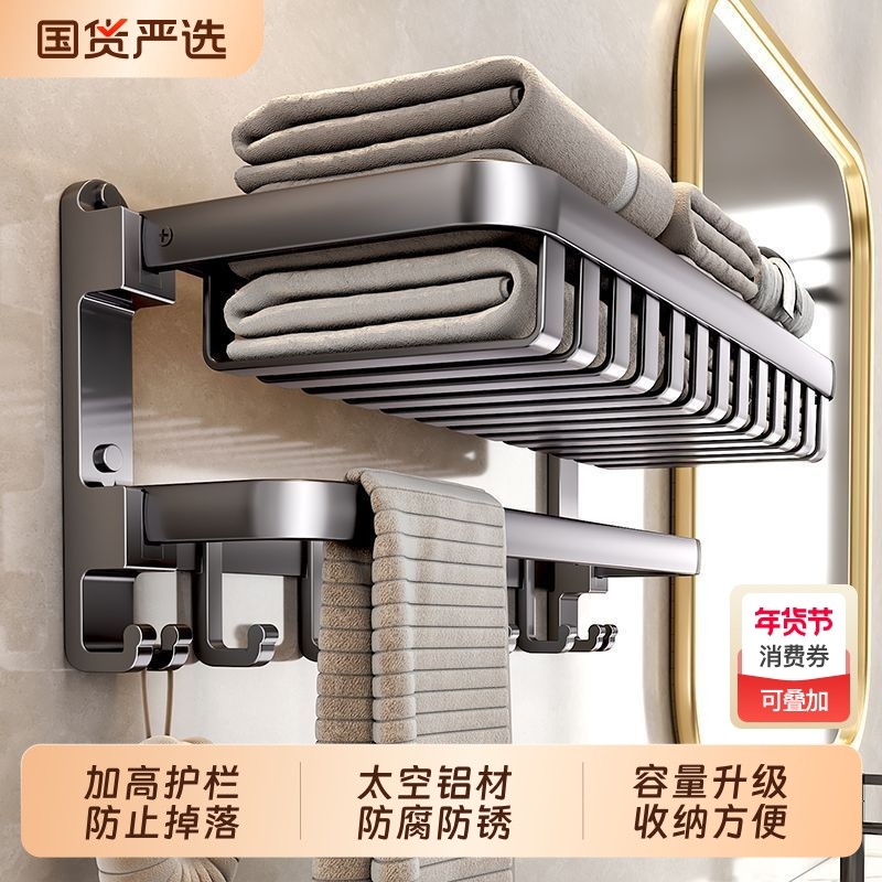 生锈包退太空铝毛巾架浴巾架免打孔卫生间浴室折叠置物架厕所壁挂
