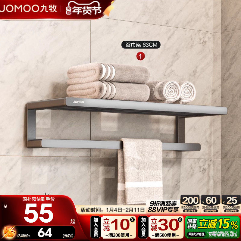 佳帮手毛巾架免打孔卫生间浴巾置物架一体浴室厕所太空铝五金挂件