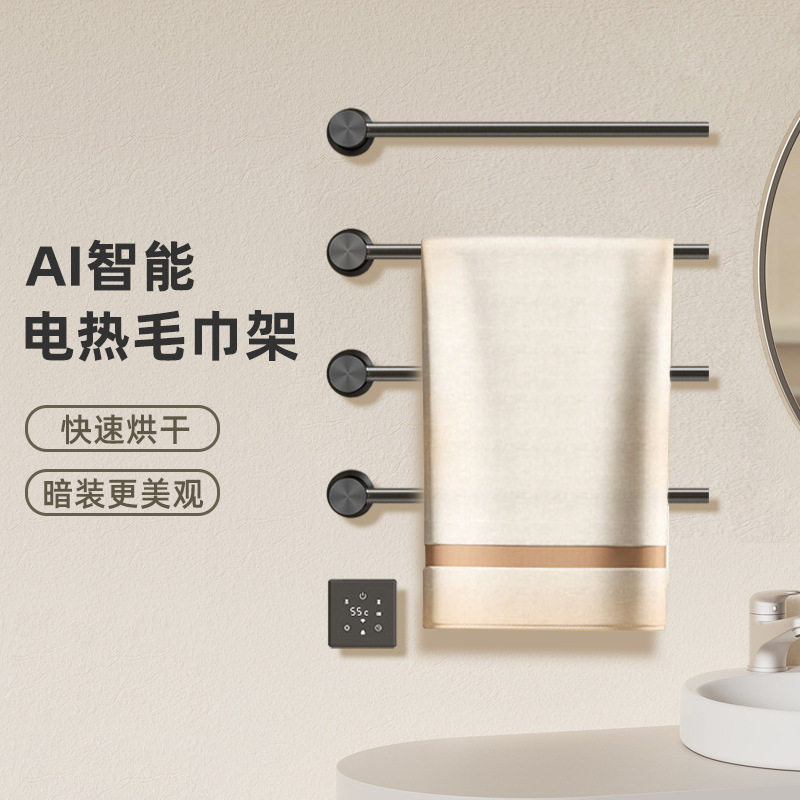 智能恒温电热毛巾杆卫生间浴室毛巾架 太空铝不锈钢置物架浴巾架