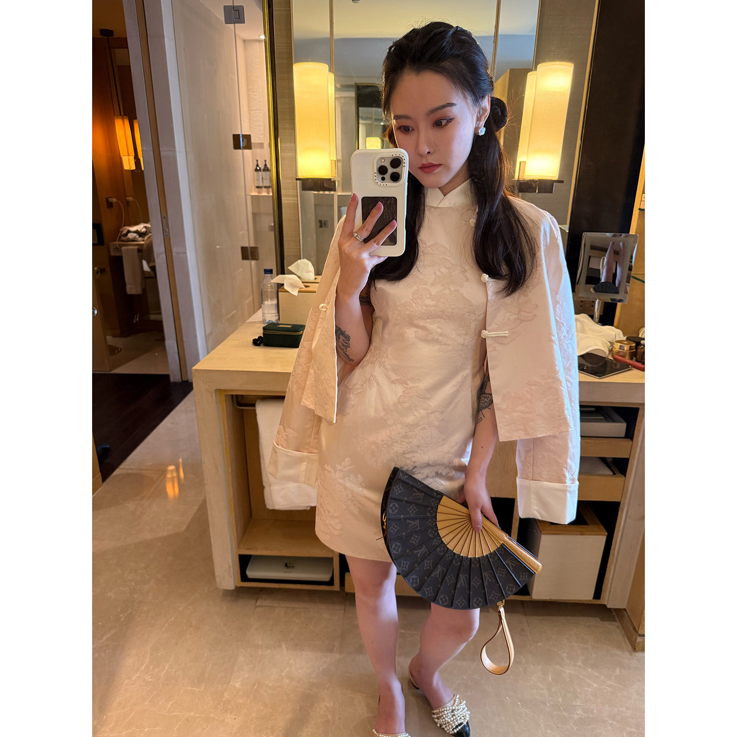 DUO智仙生 粉标 花日2026芍药香柔雾淡粉色新中式外套和少女旗袍